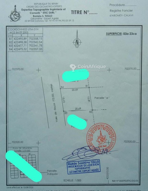Découvrez cette opportunité immobilière exceptionnelle avec un terrain viabilisé de 323 m² situé dans le quartier prisé de Mansetomè à Fidjrossè Togbin Daho, à seulement 600 mètres de l’hôtel Casa d'Italia. Ce bien se distingue par ses atouts majeurs :