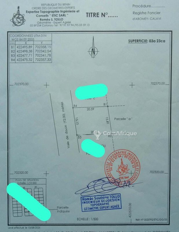 - Documents officiels complets : enregistrement cadastre, attestation de recasement et titre foncier déjà lancé.