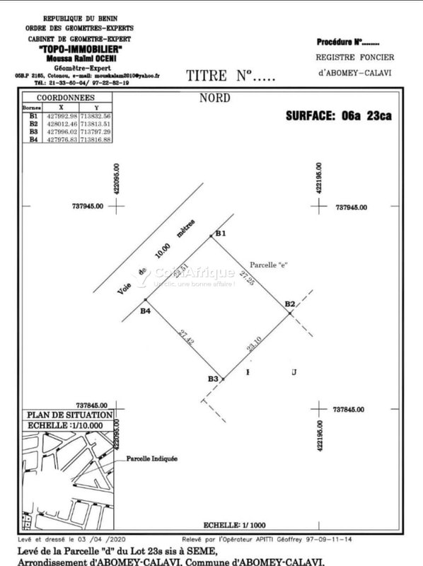 Découvrez cette parcelle de 623 m² parfaitement délimitée et prête à accueillir votre projet immobilier. Située dans un quartier prisé d'Abomey-Calavi, à seulement 150 mètres des pavés près de l'école privée LE FAUCON et de la CEB, ce terrain offre une localisation stratégique pour une construction résidentielle ou commerciale.
