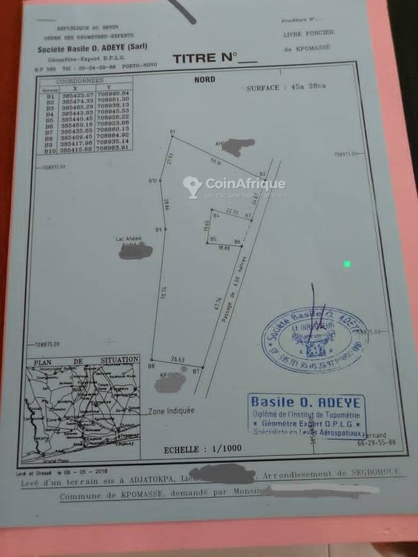 Emplacement privilégié : Proche de l'hôtel Les Alizés à Adja-Tokpa, dans la zone recherchée de Sègbohouè (commune de Kpomassè).