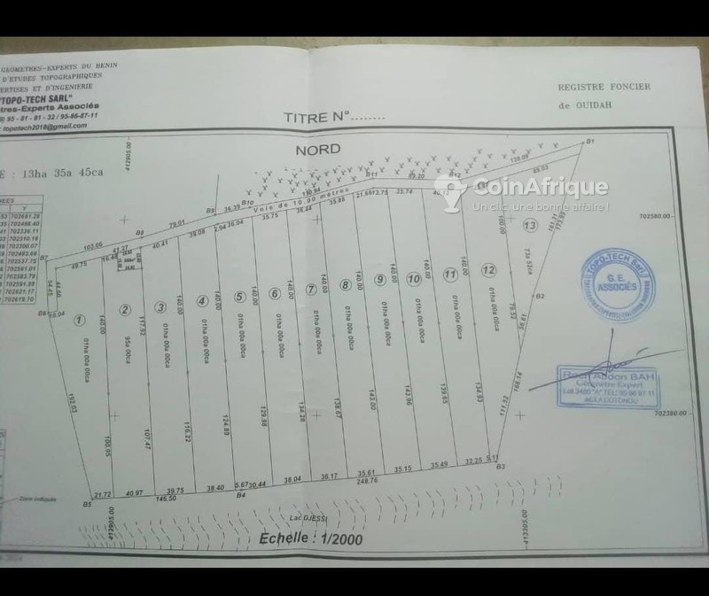 Domaine de 13 hectares avec titre foncier (TF) en face de la lagune à vendre à Avlékété