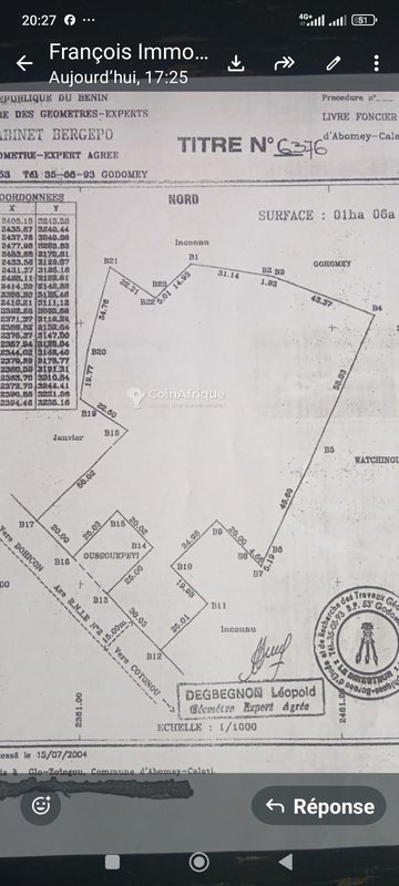 Découvrez cette opportunité immobilière rare : un terrain de 10 006 m² (1 hectare) situé à Glodjigbé, en bordure de la grande voie inter-État Cotonou-Bohicon. Ce domaine dispose d’un titre foncier personnel, garantissant une sécurité juridique optimale pour votre projet.