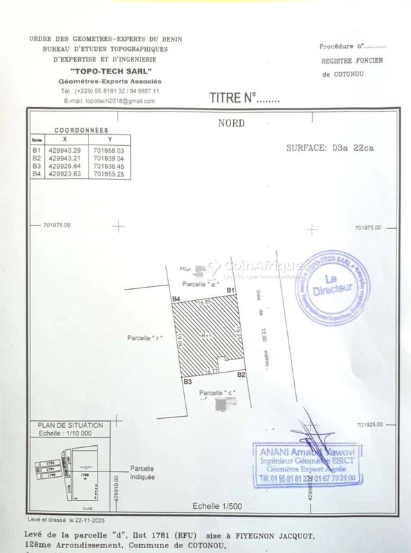 - Emplacement : Fidjrosse Houénoussou (12ème arrondissement de Cotonou)